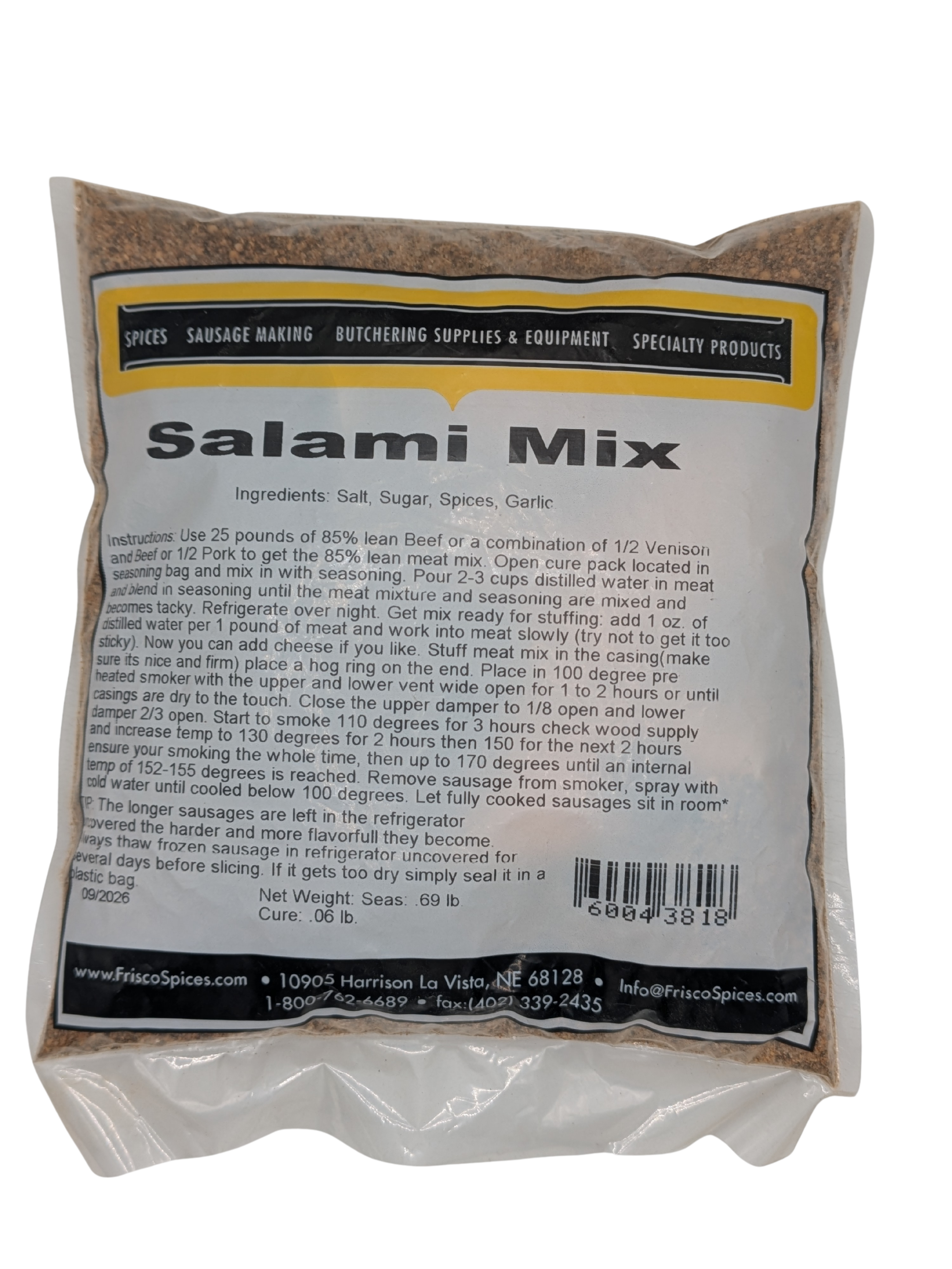 Celebrate the rich, savory flavors of traditional European salami with Frisco Brand's Summer Salami Seasoning. This expertly crafted blend combines classic salami spices with a touch of garlic and pepper, offering a perfect balance of flavor for your homemade summer salami. Ideal for charcuterie enthusiasts, this seasoning mix will infuse your salami with a complex, yet subtle, flavor profile reminiscent of old-world delicatessens. Whether you're curing, smoking, or air-drying, Frisco Brand's Summer Salami Seasoning is the key ingredient in creating authentic, delicious summer salami that can be enjoyed in sandwiches, on charcuterie boards, or as a standalone snack.