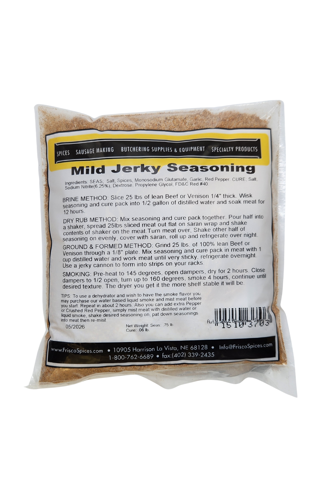 Indulge in the subtly spiced, savory goodness of Frisco Brand's Mild Jerky Seasoning. Our Mild Jerky Seasoning is expertly formulated for those who prefer a gentler touch of spice in their jerky. This blend combines traditional jerky spices with a milder heat level, ensuring a flavorful yet not overpowering taste experience. Perfect for beef, pork, poultry, or game, this seasoning is ideal for creating delicious, homemade jerky that everyone can enjoy. Whether you're a jerky-making novice or a seasoned pro, Frisco Brand's Mild Jerky Seasoning is the key to crafting delectable, mild-flavored jerky with ease.